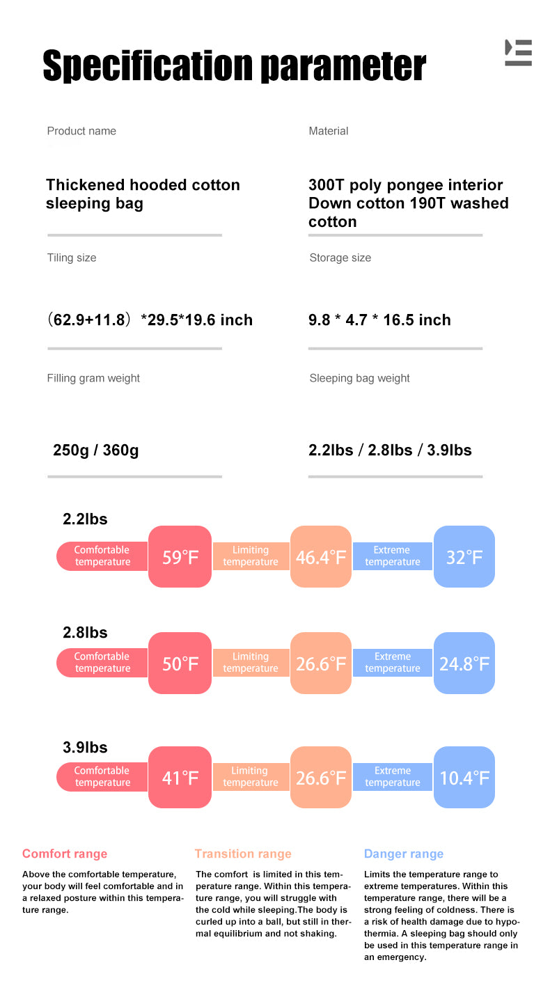 Breathable and moisture-resistant: Crafted with polyester pongee fabric, our sleeping bag offers both warmth and breathability. It allows air circulation to prevent overheating while keeping you dry and comfortable, even in humid conditions. Say goodbye to sweaty nights and hello to a refreshing sleep experience.